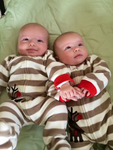 The boys did get a weight update... They were both the same weight... Where did my little preemies go? 13 pounds 12.5 ounces! My little chunky monkies:). That's the 20th percentile for weight compared to a full term baby.